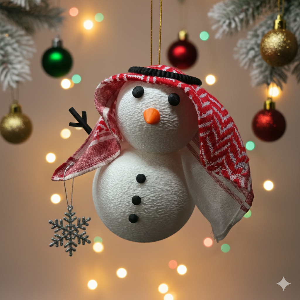 Meet the most charming addition to winter decor. Habibi Frost adds a local twist to the season, trading a top hat for a traditional keffiyeh and agal. Perfect for adding a touch of heritage to your Winter Festive Season display.